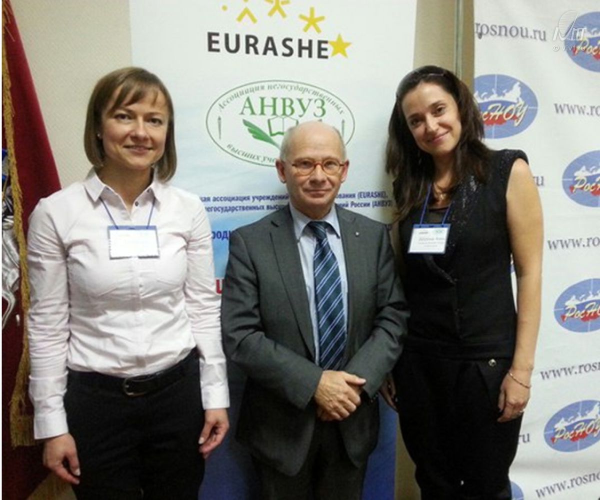 25 сентября 2015 года Европейской ассоциацией учреждений высшего образования (EURASHE) и Ассоциацией негосударственных высших учебных заведений России (АНВУЗ) был проведён международный научно-практический семинар на тему «Развитие высшего образования как фактор преодоления экономического кризиса». От нашего вуза в семинаре приняла участие руководитель электронно-ресурсного центра Зеленина Анна Николаевна.