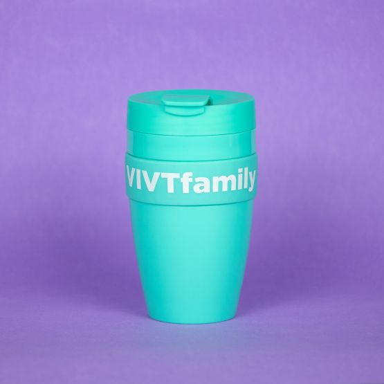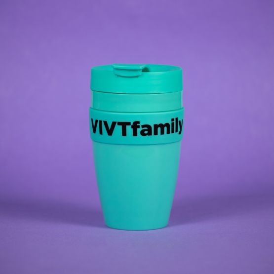Кружка #VIVTfamily бирюзовая с белой надписью